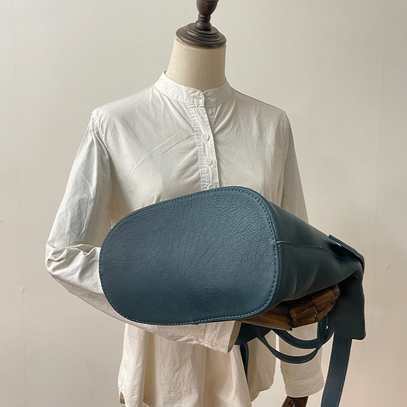Women Cowhide Leather Tote Bag With Shoulder Strap