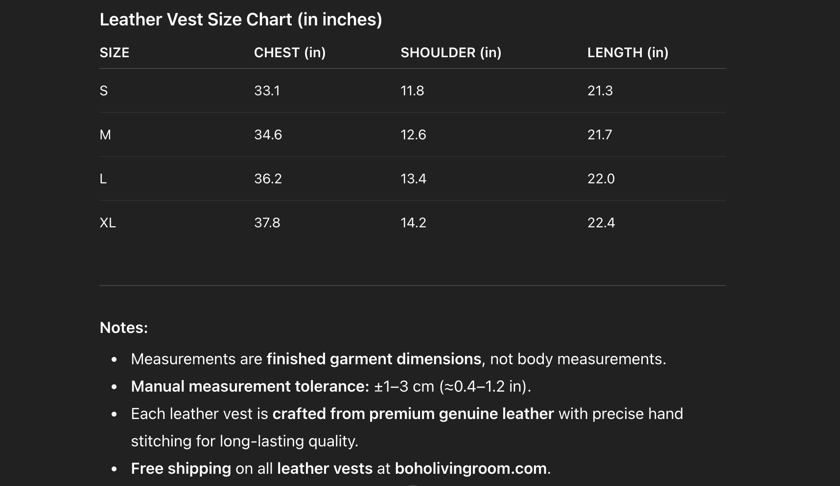 - Please make sure to select the correct size from the chart provided. If you need any assistance, feel free to message us. Each ladies biker vest involves significant cost and craftsmanship, and we work on very small margins.