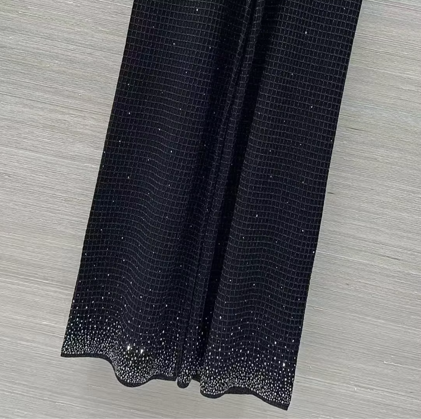 • Full-Length Rhinestone Pants — soft elastic waistband and straight-leg structure designed for flexibility, comfort, and a flattering drape.