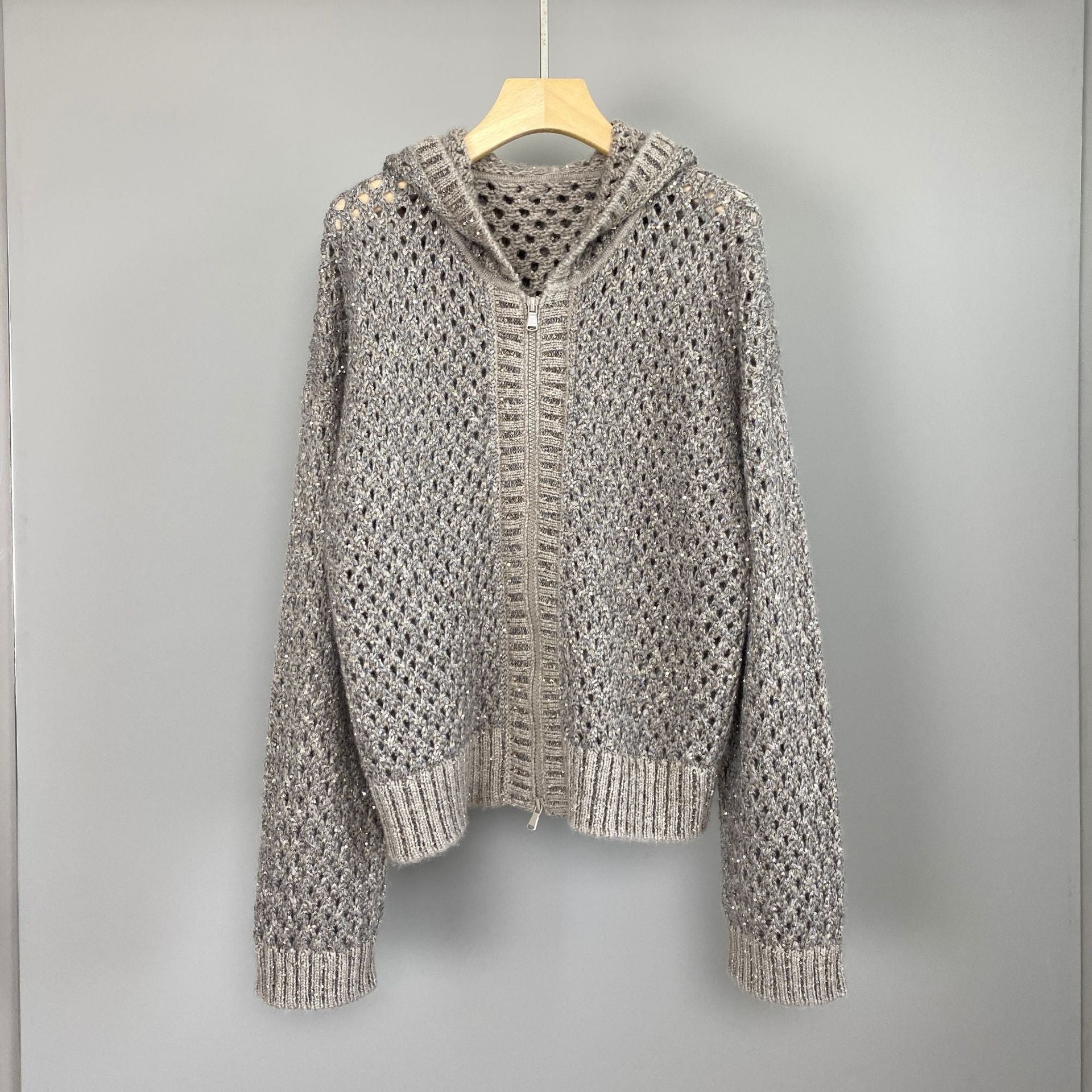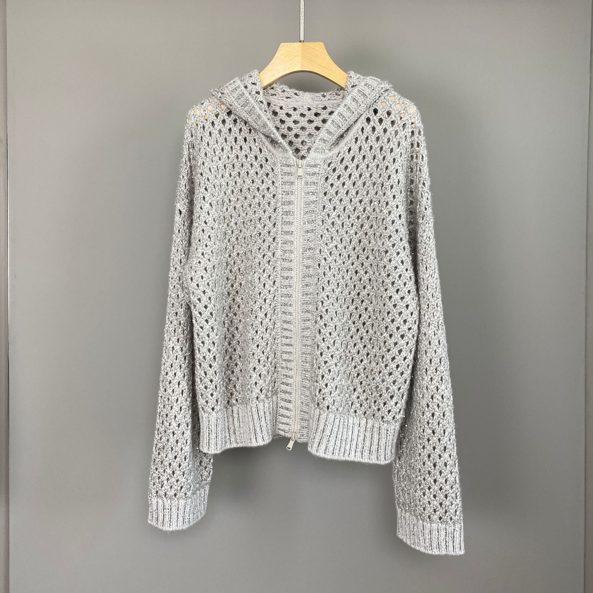 Premium Women’s Cashmere Cardigan – Sequined Hollow Knit Zip-Up Sweater