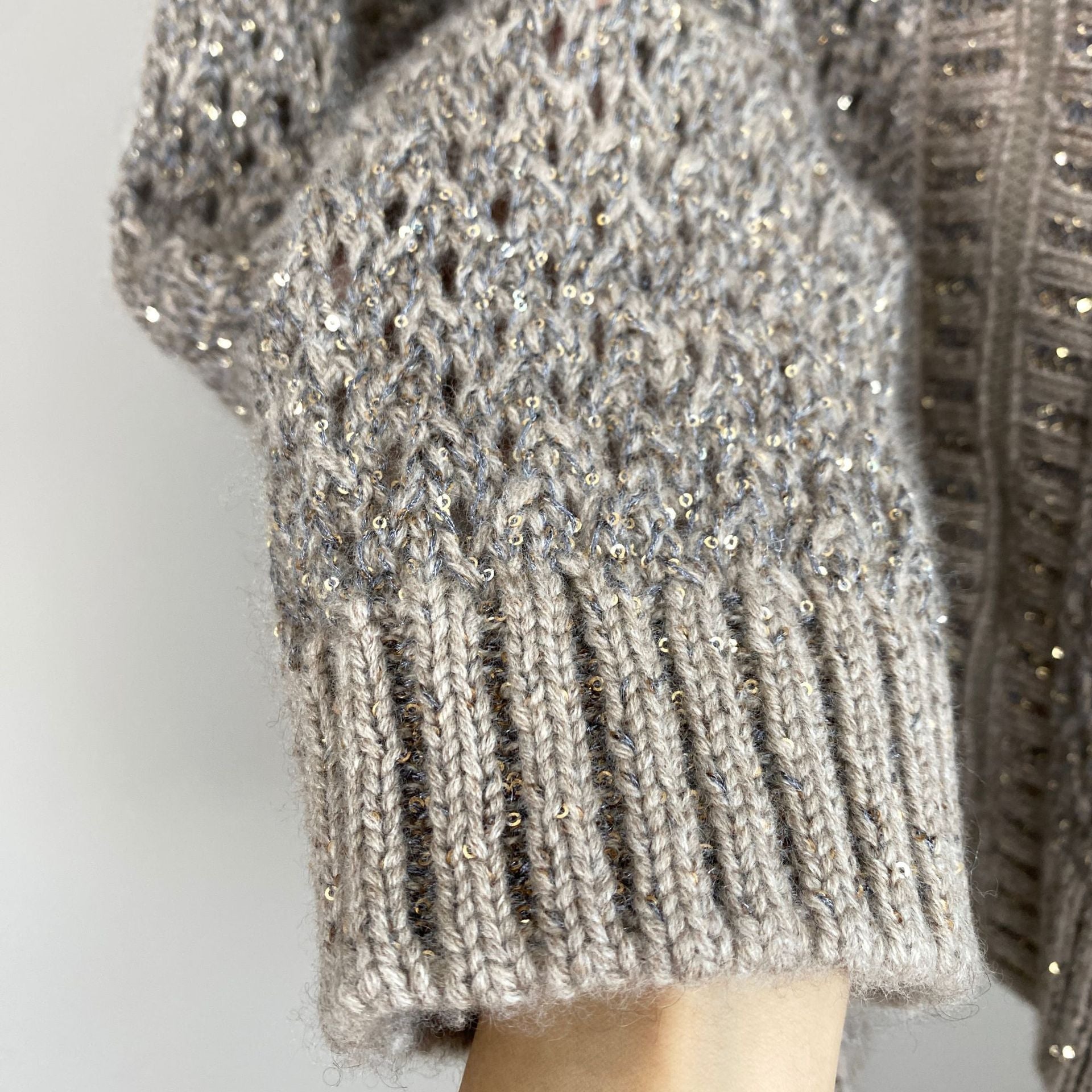 - Subtle gold sequins intricately woven into the knit surface for light-catching shimmer under any lighting.