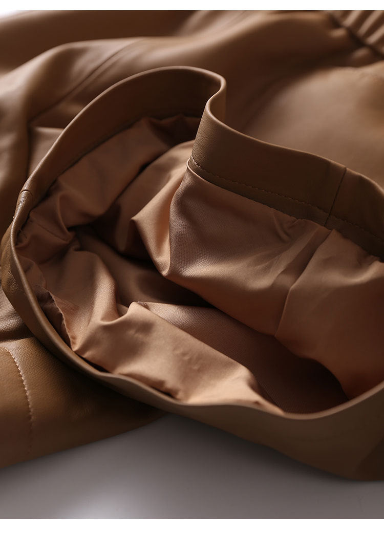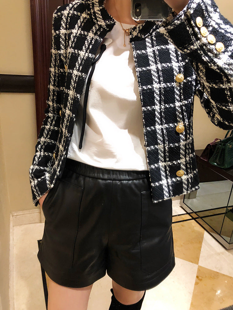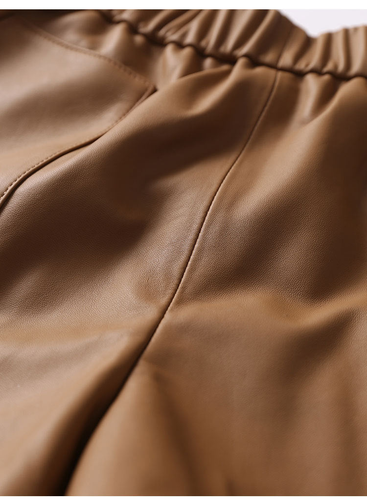 Women’s Genuine Sheepskin Leather High Waist Shorts with Pockets