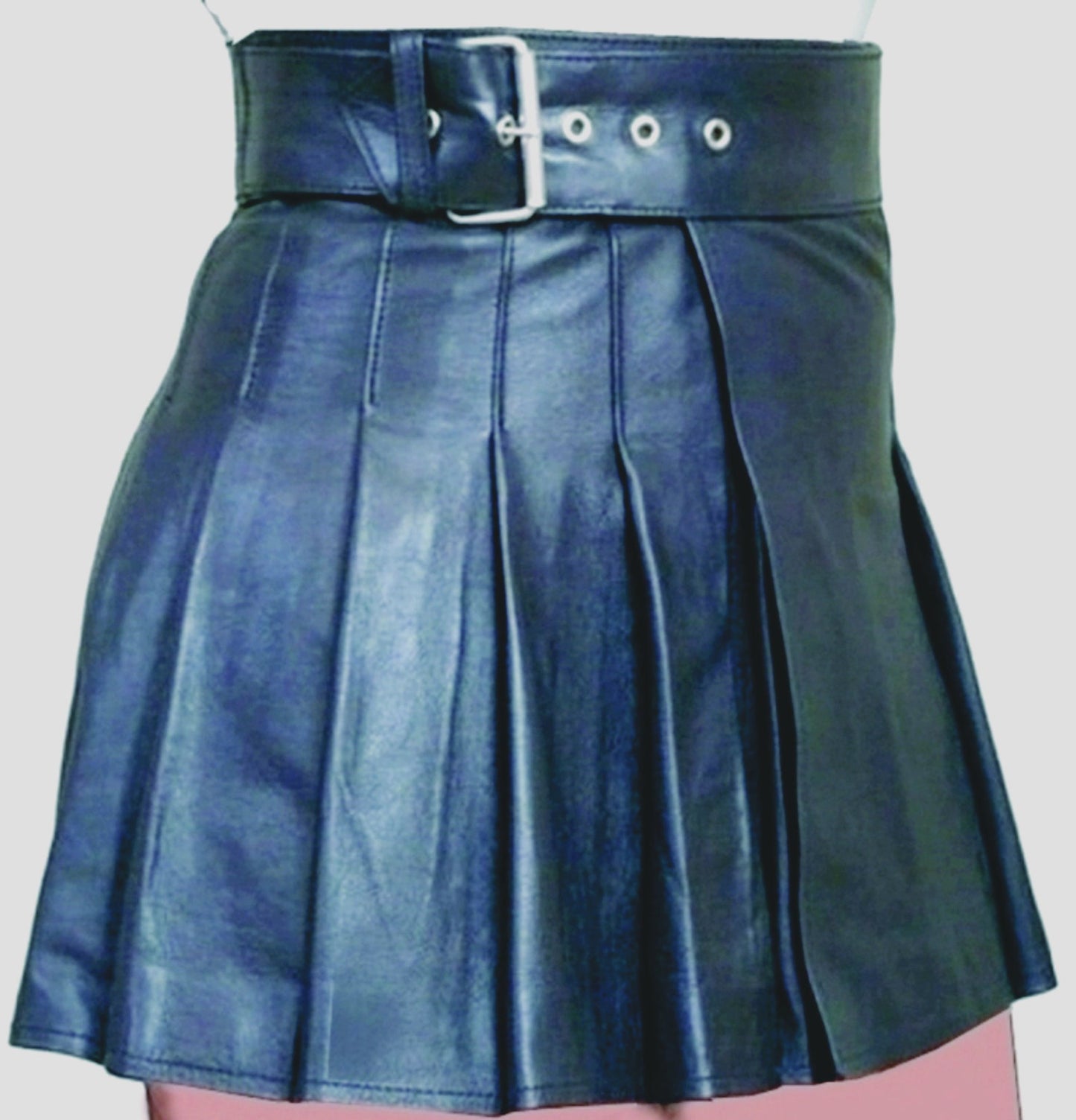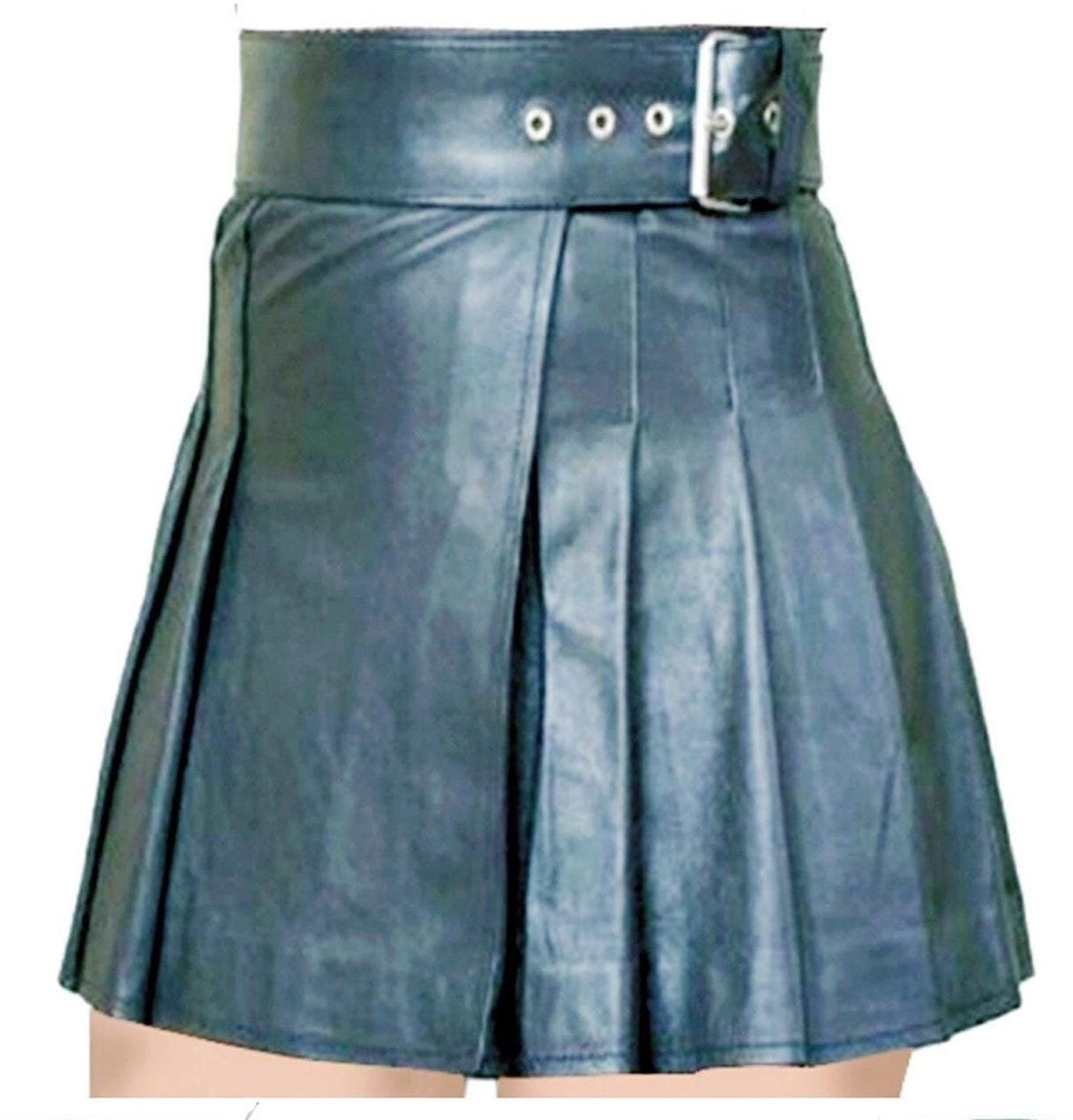 Classic Scottish-inspired leather kilt for women, crafted in genuine leather for a modern twist on tradition.
