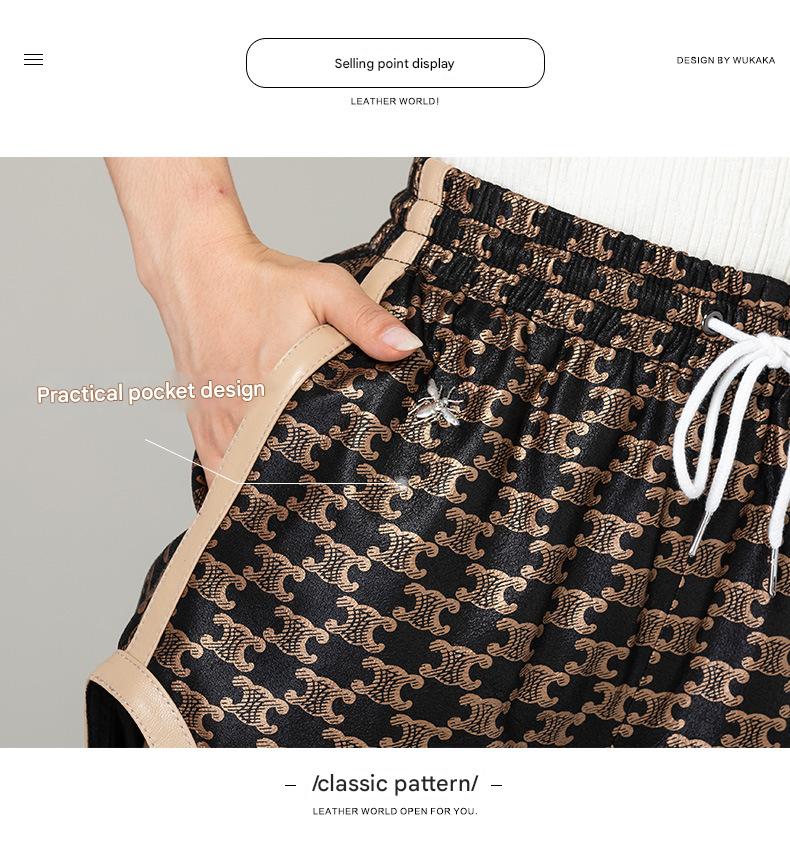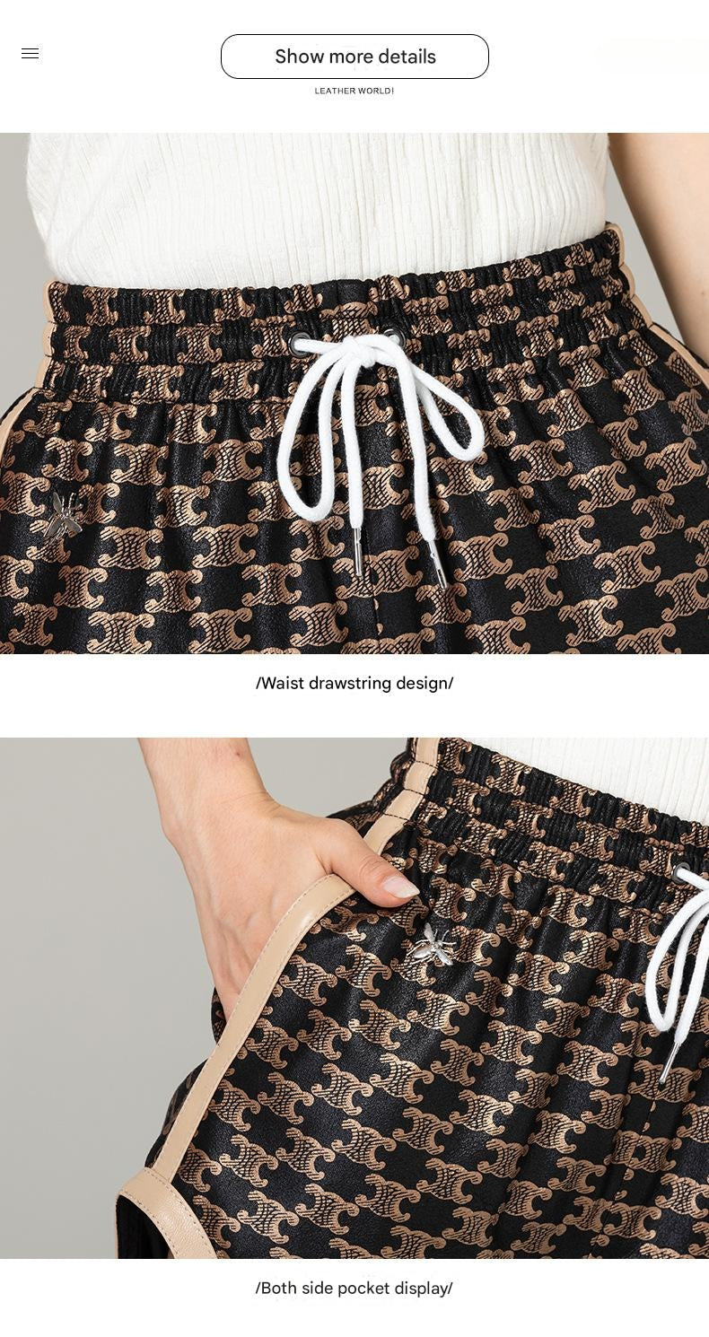 - Pattern design reflects luxury styling often seen in black mini leather skirts and women leather skirt outfits