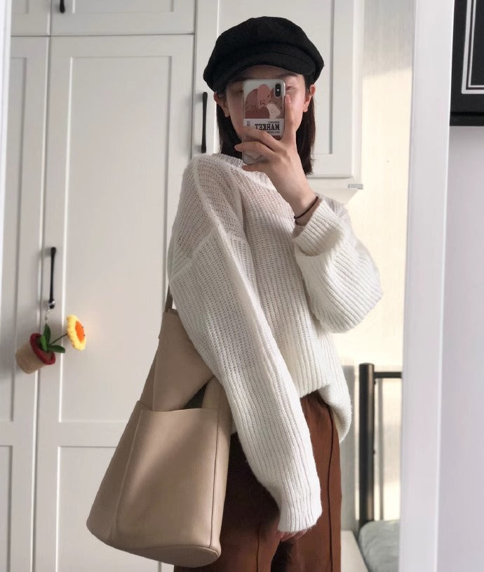 • Premium soft cowhide leather tote available in 5 colors: black, grey, green, tan brown, and ivory beige