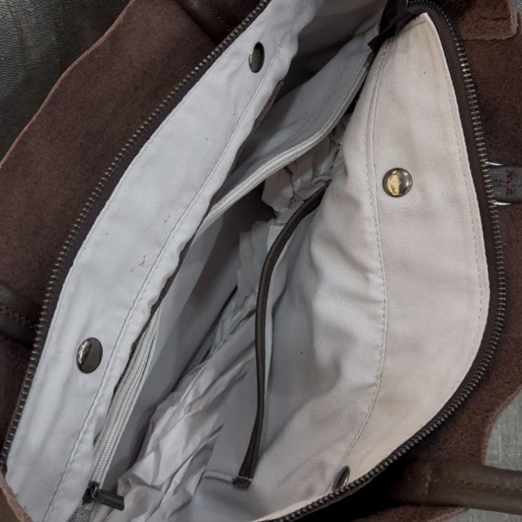 - Inner section includes a full-length zip compartment and snap-button pockets as visible in the second image.
