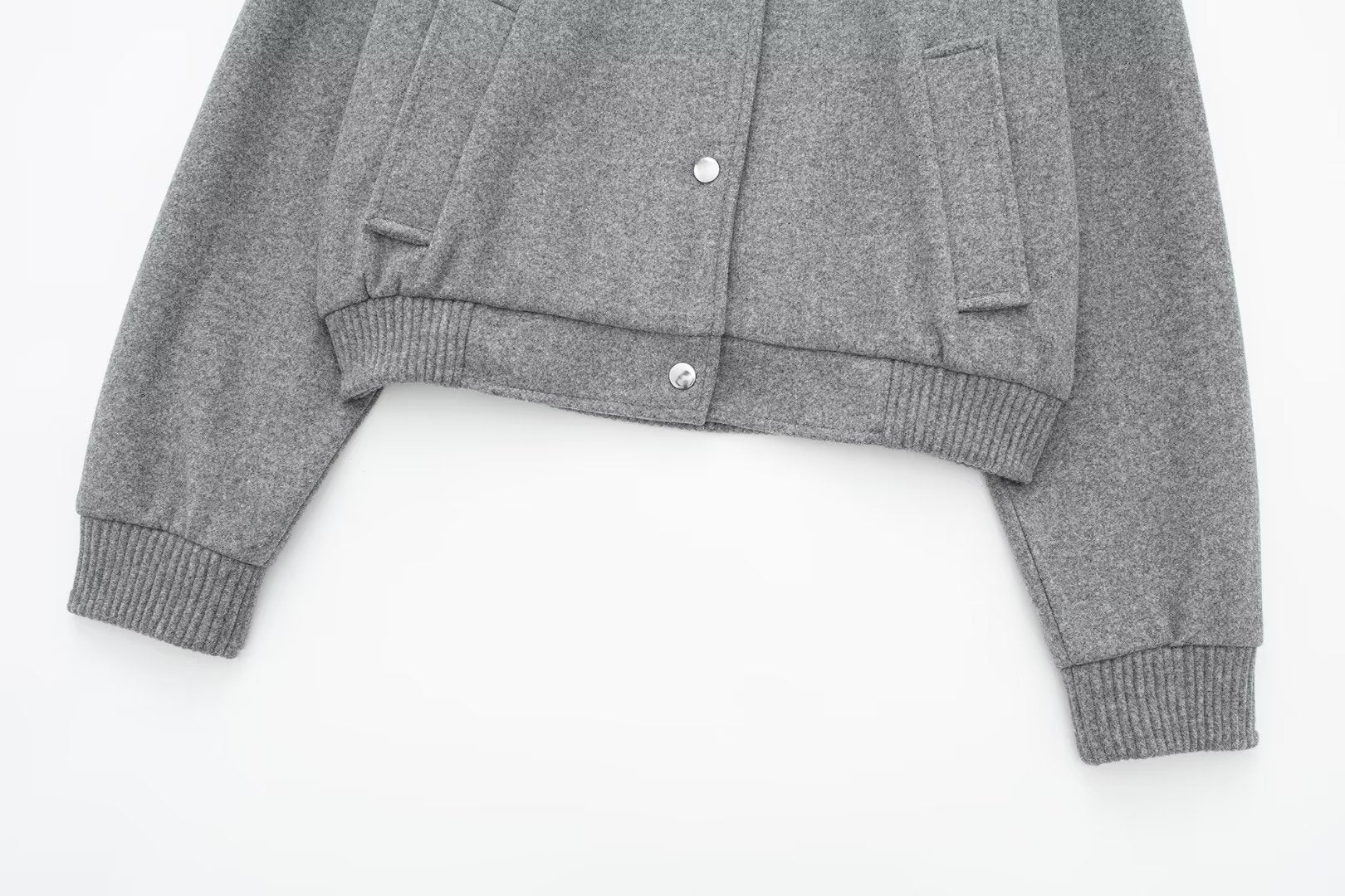 Women Loose Pilot Wool Jacket with Stand Collar and Snap Closure