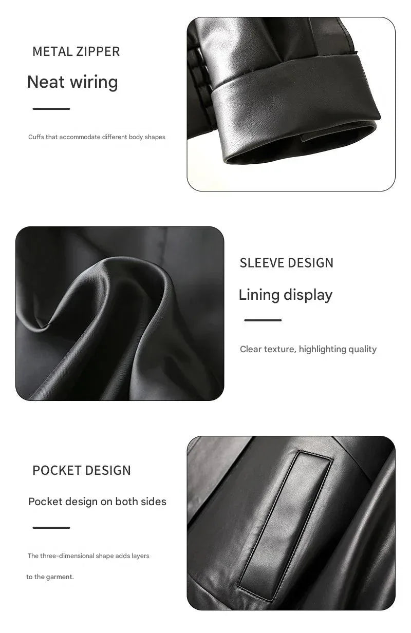 Premium Women Oversized Leather Jacket with Stand Collar and Zip-Up Front