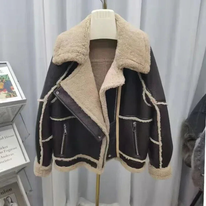 Genuine Sheepskin Women Real Fur Jacket with Double-Faced Merino Wool