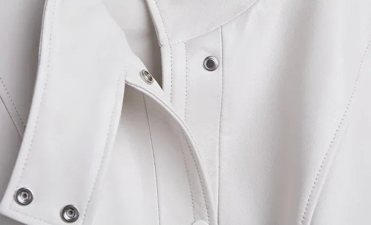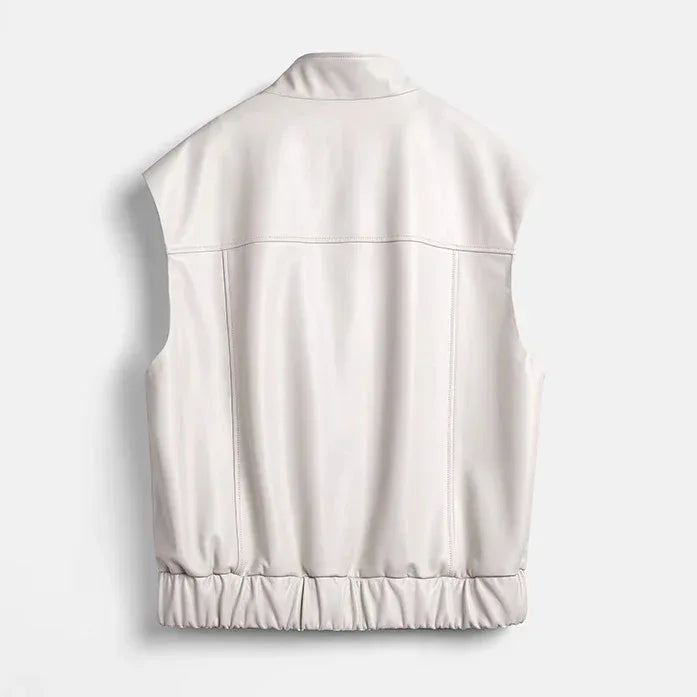 This women leather vest is for some who is interested in real leather outerwear with a clean stand-collar profile and front-pocket layout. The real leather vest uses soft sheepskin for a smooth finish that suits office outfits, travel layers, and everyday wear. The women work leather vest shape supports structured styling, while the sleeveless cut makes it easy to layer across seasons. The images show its panel lines, balanced proportions, and refined surface texture, helping the vest rank for high-intent searches on multiple platforms. Its material, shape, and functional placement of pockets make it a strong option for shoppers seeking genuine leather layering pieces.