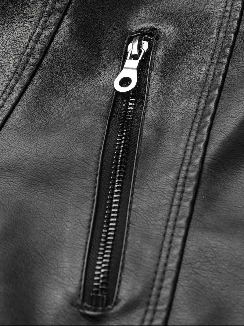 This women’s faux leather biker jacket delivers a modern and confident design through a sleek black PU texture and body-contouring cut. The zip-up front, snap collar, and structured seams enhance mobility while preserving form. Engineered from soft yet durable imitation leather, it offers timeless appeal suitable for both casual and semi-formal looks. The lightweight inner lining provides all-day comfort, making this faux leather jacket for women a smart outerwear option for multiple occasions.