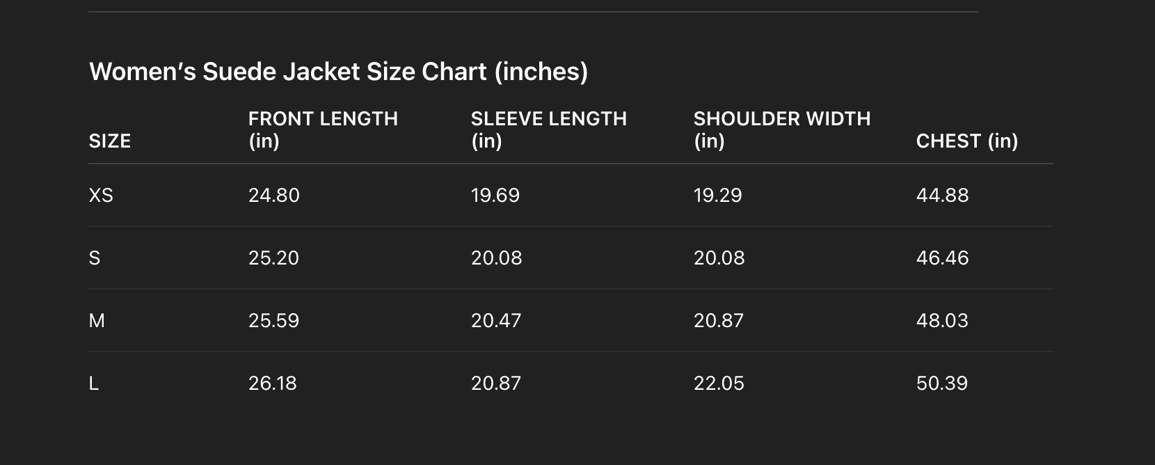 - Please check the size chart correctly before placing the order. If you need any assistance, feel free to message us. Each jacket involves significant cost and craftsmanship, and we work on very small margins.