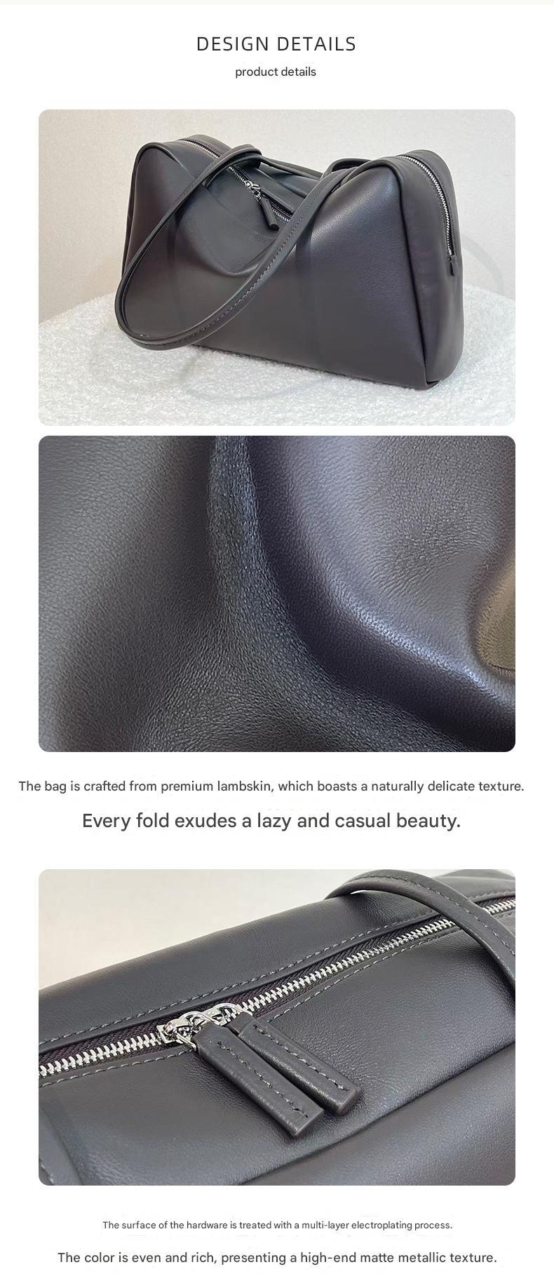 • Interior showcases sheepskin lining for breathable comfort and long-hour carry, as shown in the open-bag images.