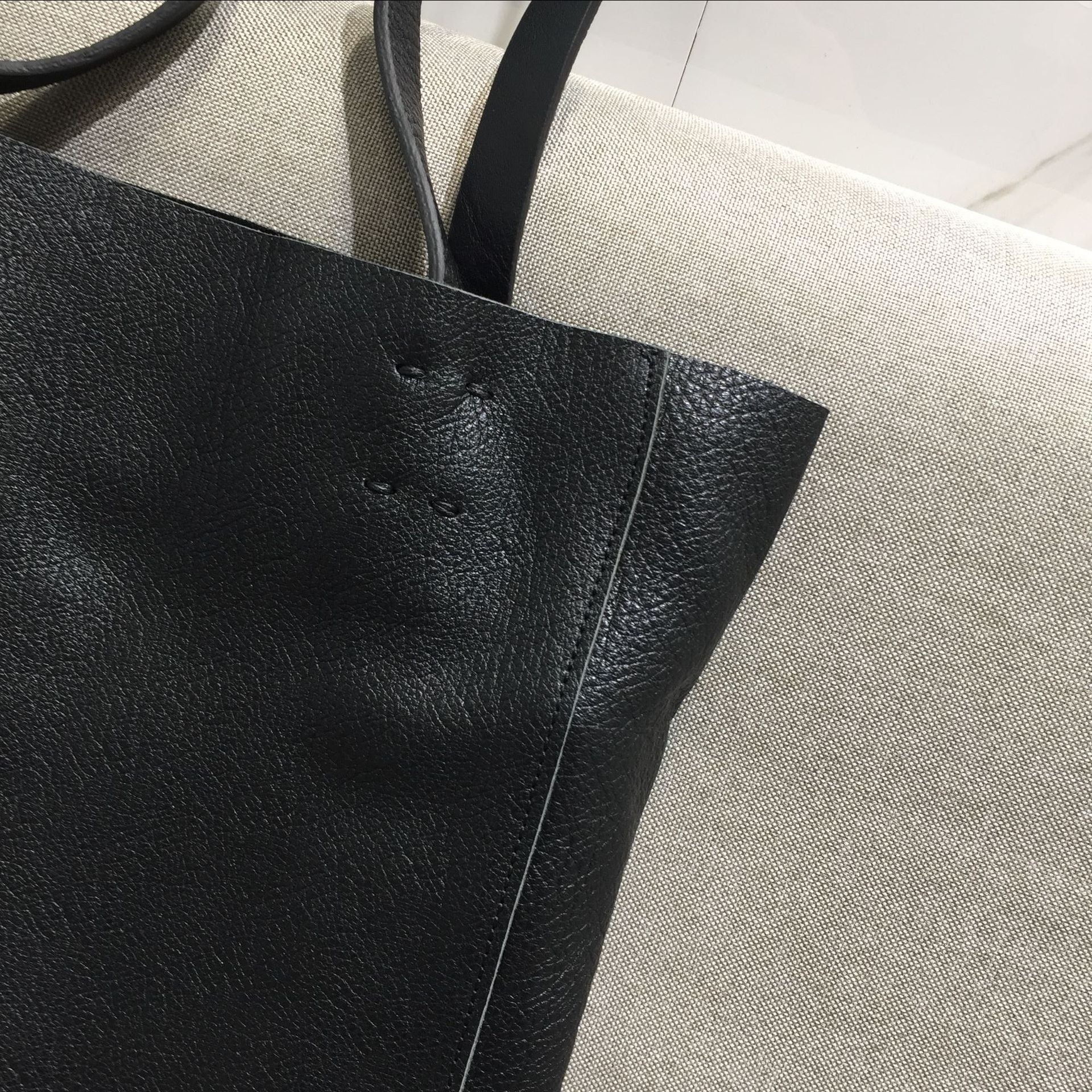 - Handmade genuine cowhide surface with natural grain texture, soft folds, and uncoated edges exactly as shown in the close-up shots.