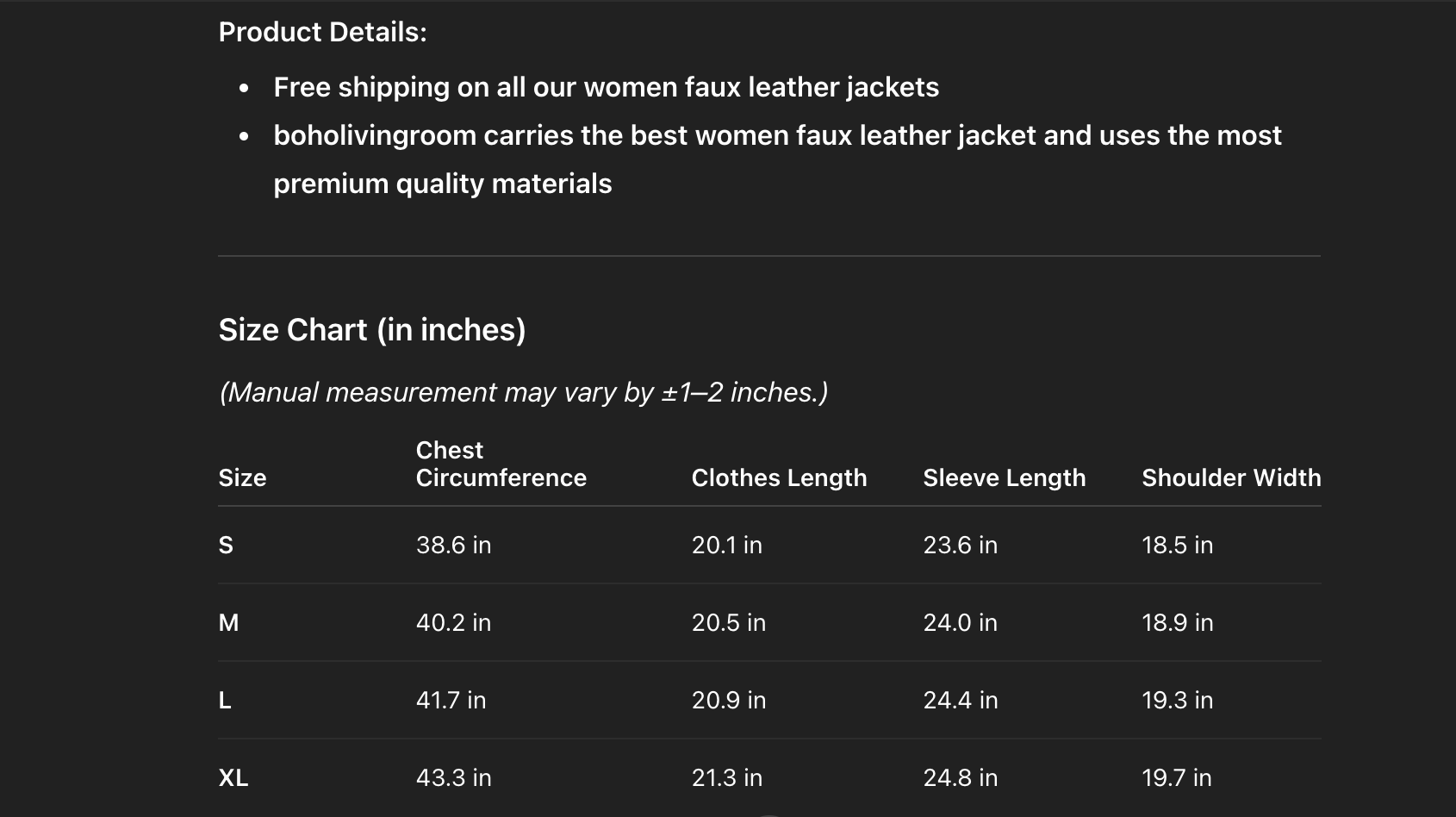 - Please check the size chart correctly before placing the order. If you need any assistance, feel free to message us. Each women’s green faux leather cropped jacket involves significant cost and craftsmanship, and we work on very small margins.