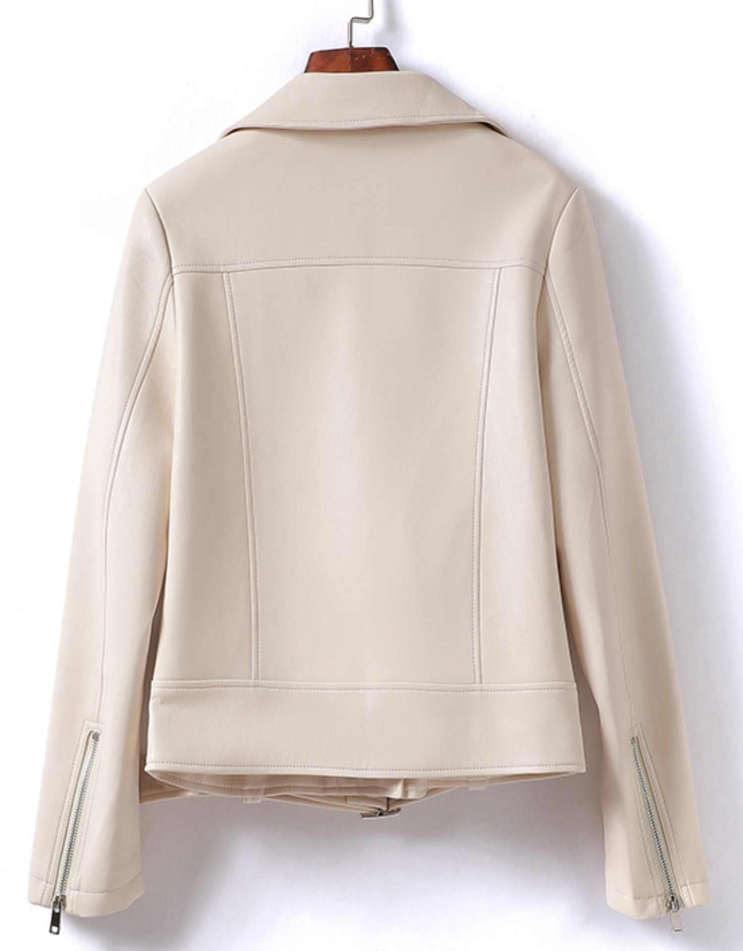 Women’s Leather Bomber Jacket Moto Style Zip Belted