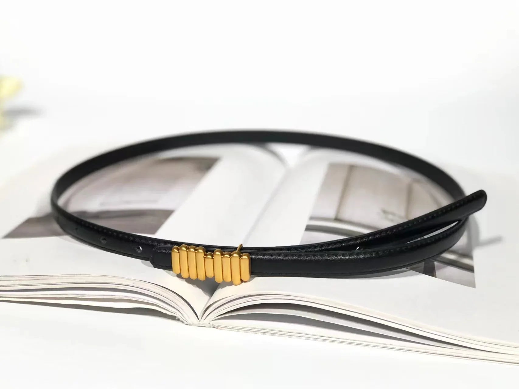 Women’s Skinny Genuine Leather Belt Gold Buckle