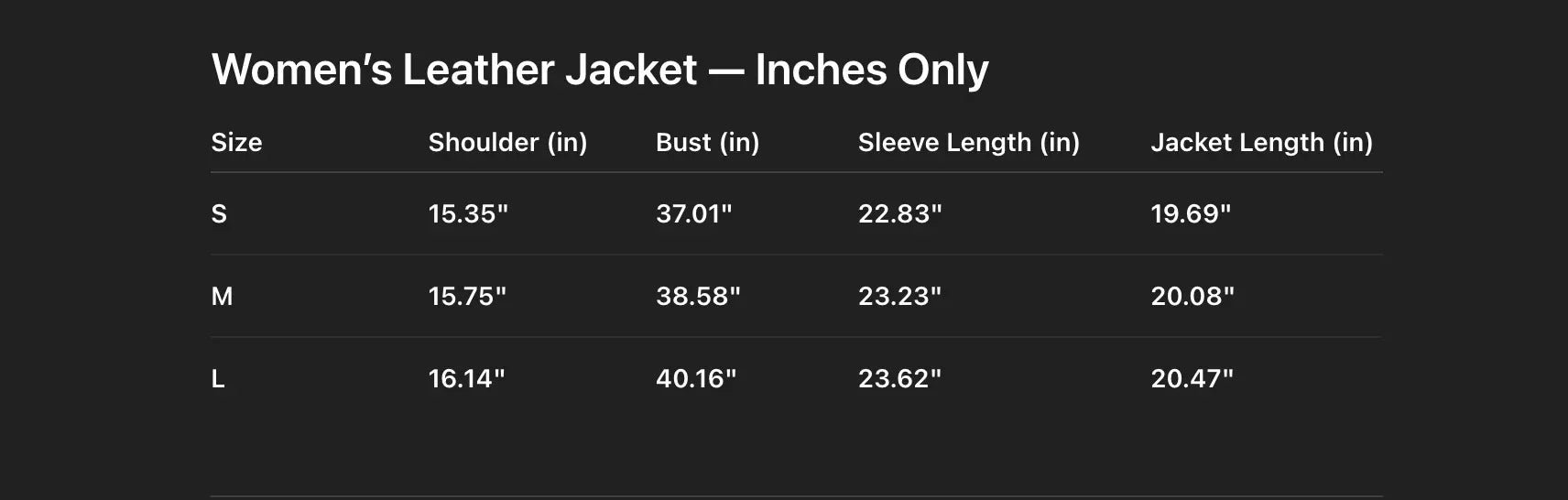 • Smooth front zipper closure keeps cold air out while maintaining a clean women leather jacket look.