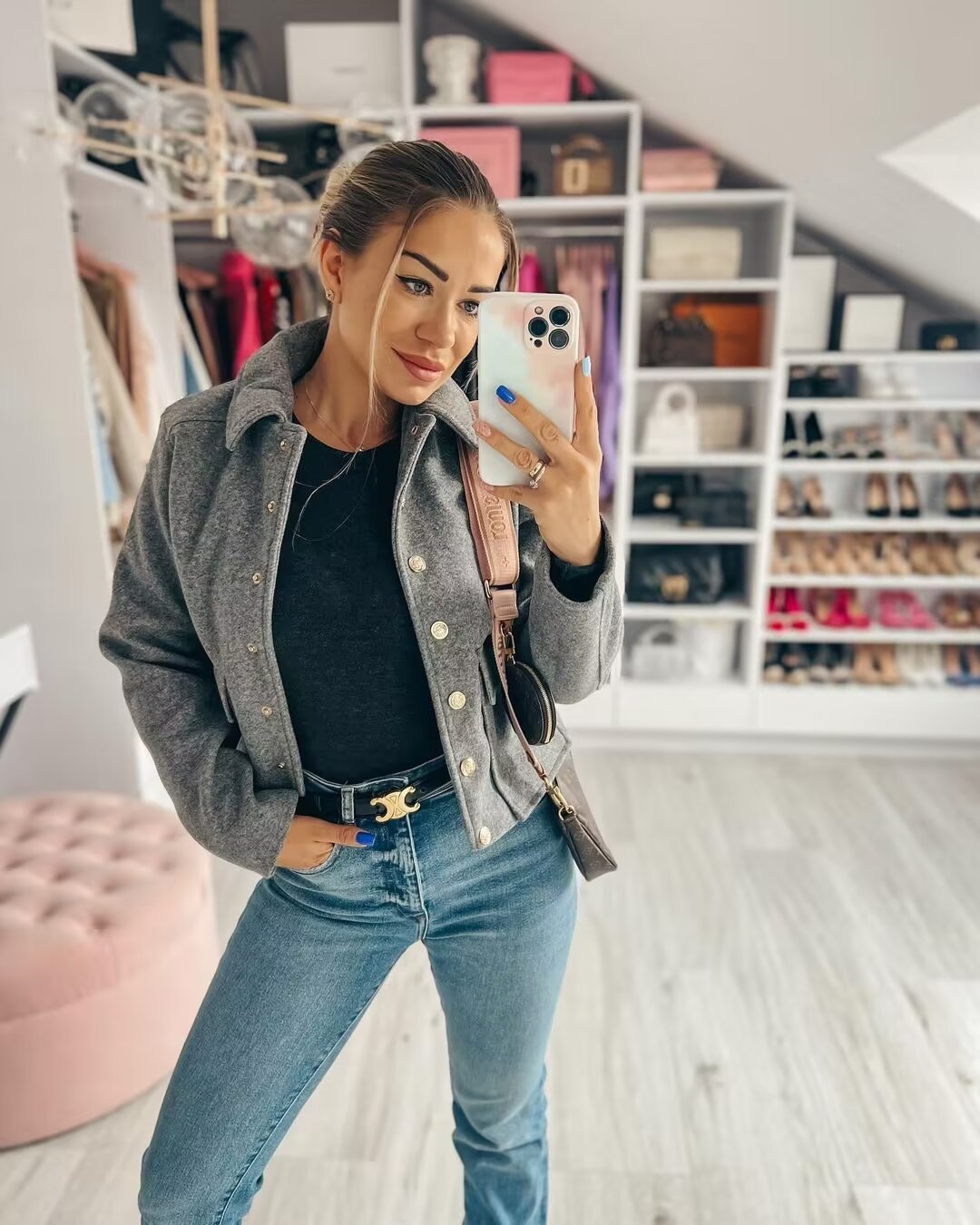 - Cropped silhouette pairs seamlessly with jeans, trousers, and fitted skirts for refined daywear