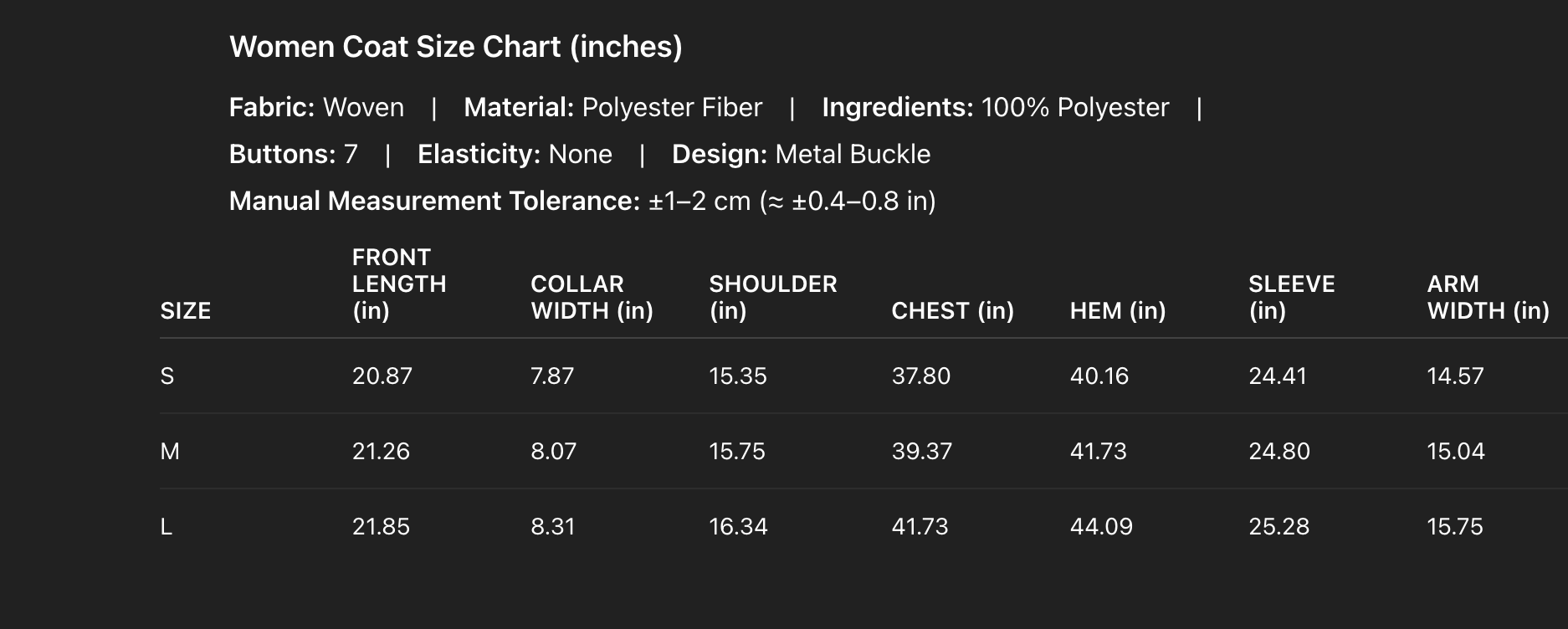 - It takes approx seven business days to complete each women’s urban casual soft metal button decorated jacket
