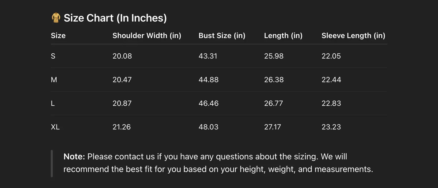 - Please check the size chart correctly before placing the order. If you need any assistance, feel free to message us. Each shearling jacket involves significant cost and craftsmanship, and we work on very small margins.