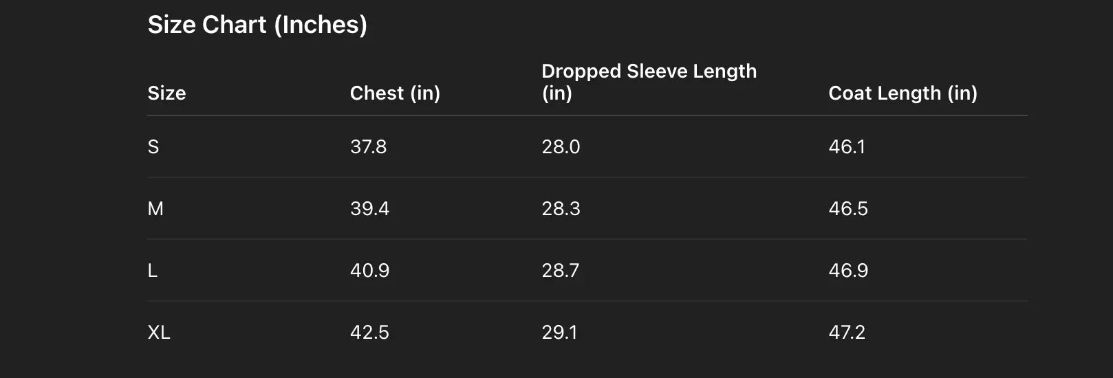 - Inner lining supports comfort against the skin and helps the coat sit evenly across the chest and back