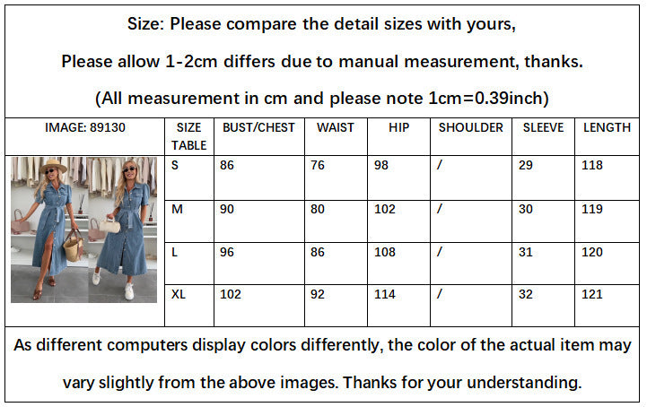 This women’s denim dress delivers everyday sophistication in a breathable midi design. Featuring a button-down front, collared neckline, and a waist tie belt, this blue jean dress women search for blends structure with comfort. The short sleeves with subtle puff shoulders add a feminine edge, while the front slit keeps it easy to move. Ideal as a summer denim dress for women, it pairs seamlessly with sneakers for daytime or sandals for evening. Whether browsing for a denim shirt dress for women or a casual jean dress for women, this piece offers the right balance of style, comfort, and fit.