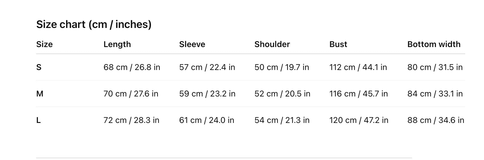 • Drop shoulder sleeves for an easy silhouette.