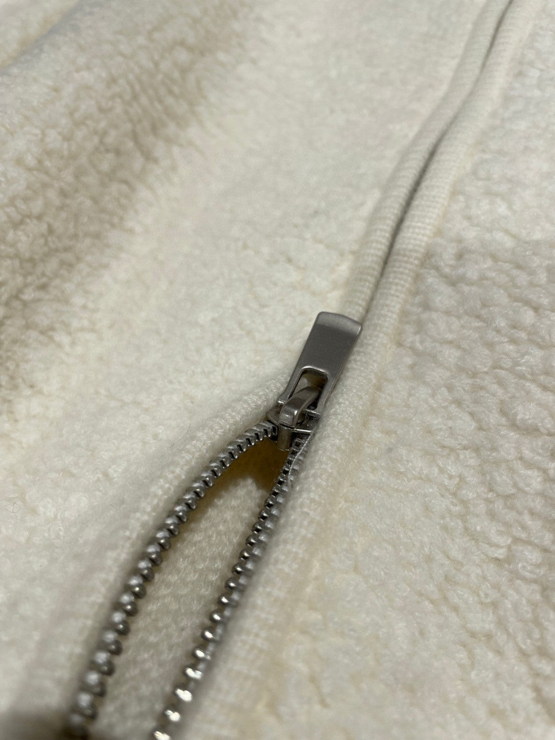 - Smooth two-way zipper closure allows flexible styling and comfort layering.