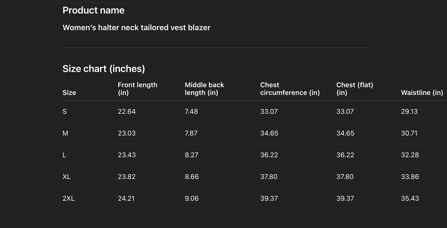 - Please check the size chart carefully before ordering. If you need help, message us anytime. Each women v neck halter office vest blazer requires high skill and materials, and margins are very small.