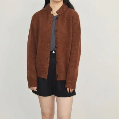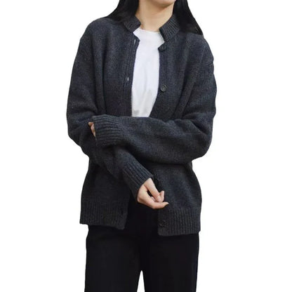 Women’s Wool Knit Cardigan Stand Collar Button-Up Wool Cardigan Jacket