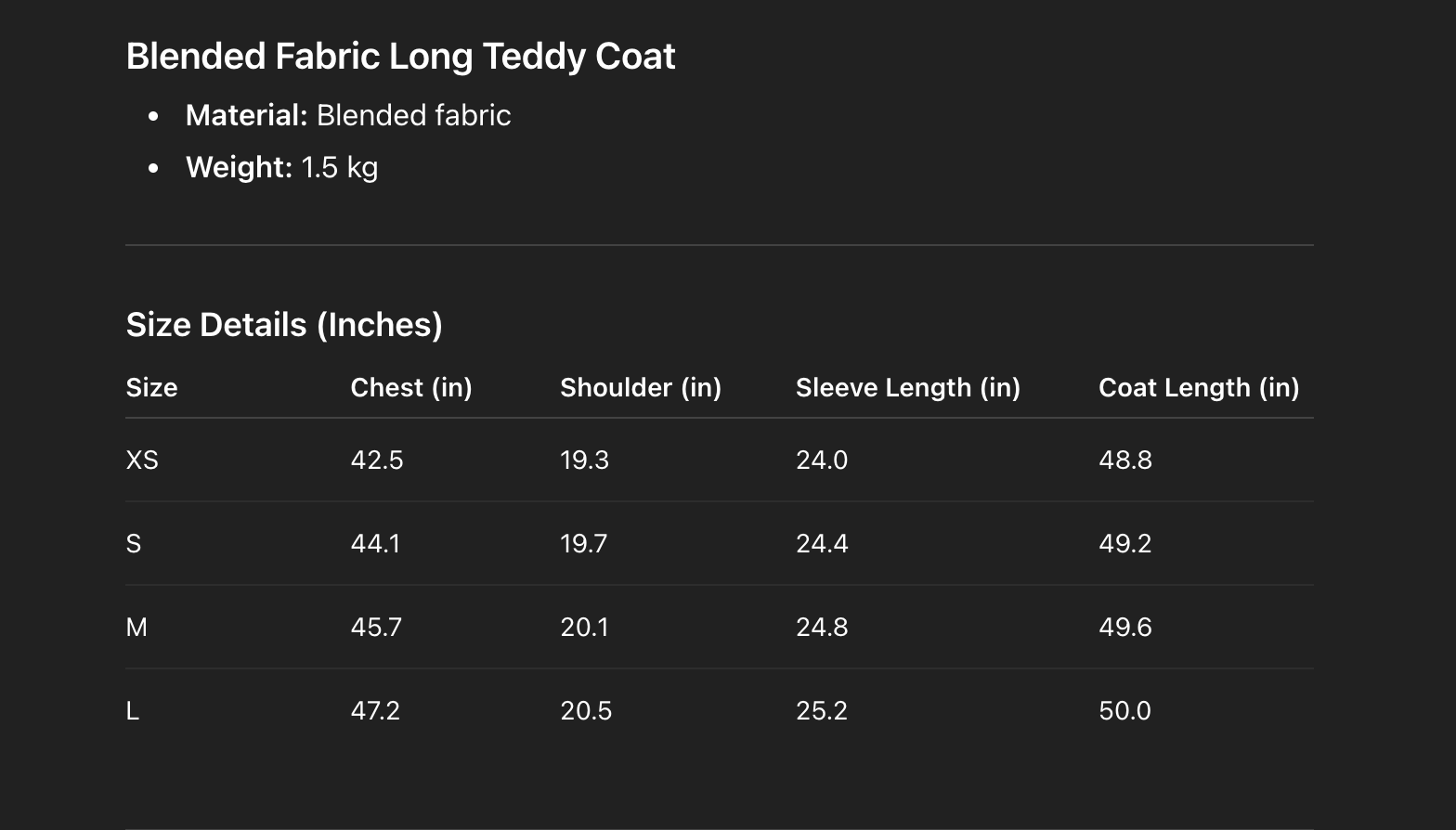 • Please review the size chart carefully before ordering. If you need assistance, message us anytime. Each extra long lambswool fleece lapel coat involves skilled workmanship and premium materials, and margins are very small.