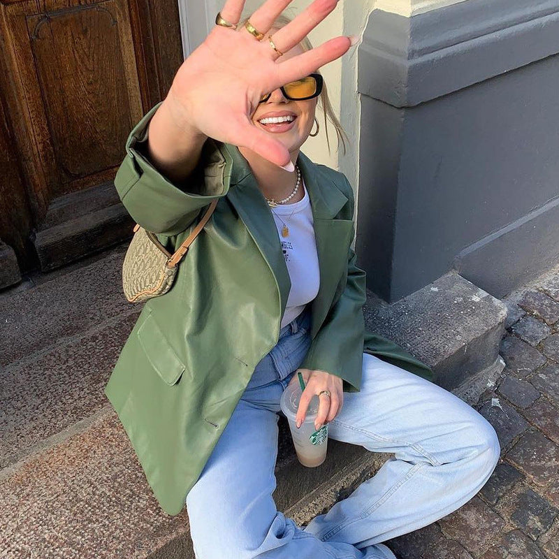 Women's faux leather blazer for spring and autumn