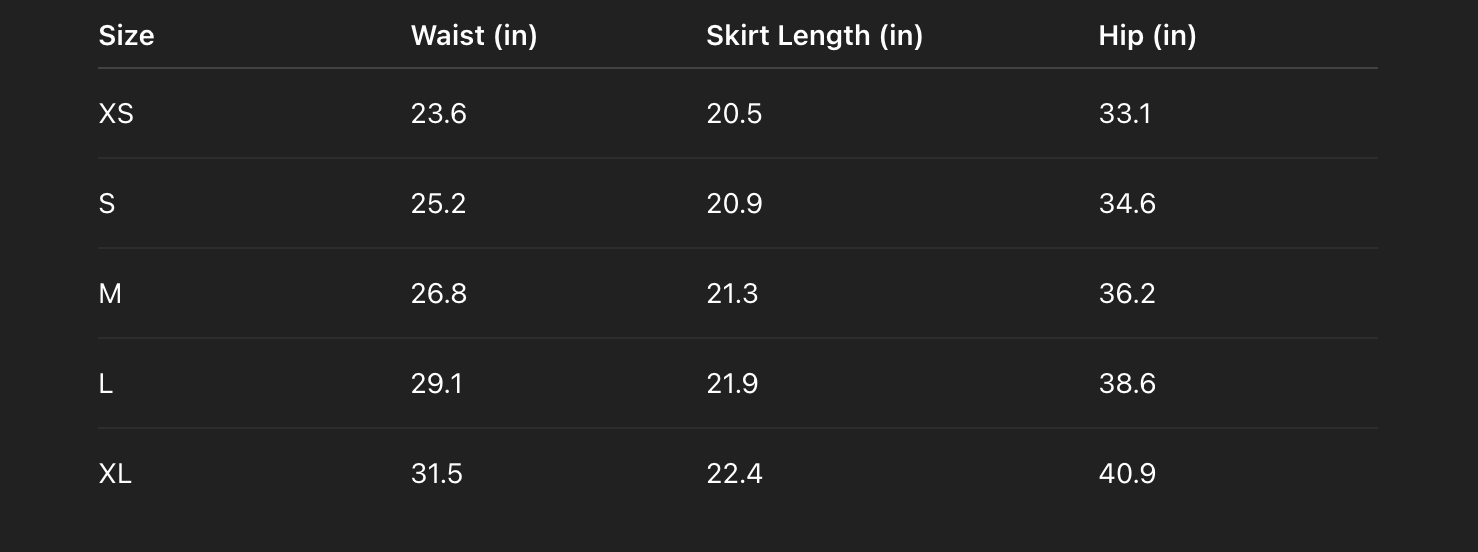 - Production time: Takes approximately 7–10 business days to complete each skirt.