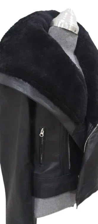 Leather jacket with fur collar womens – a refined black outerwear essential