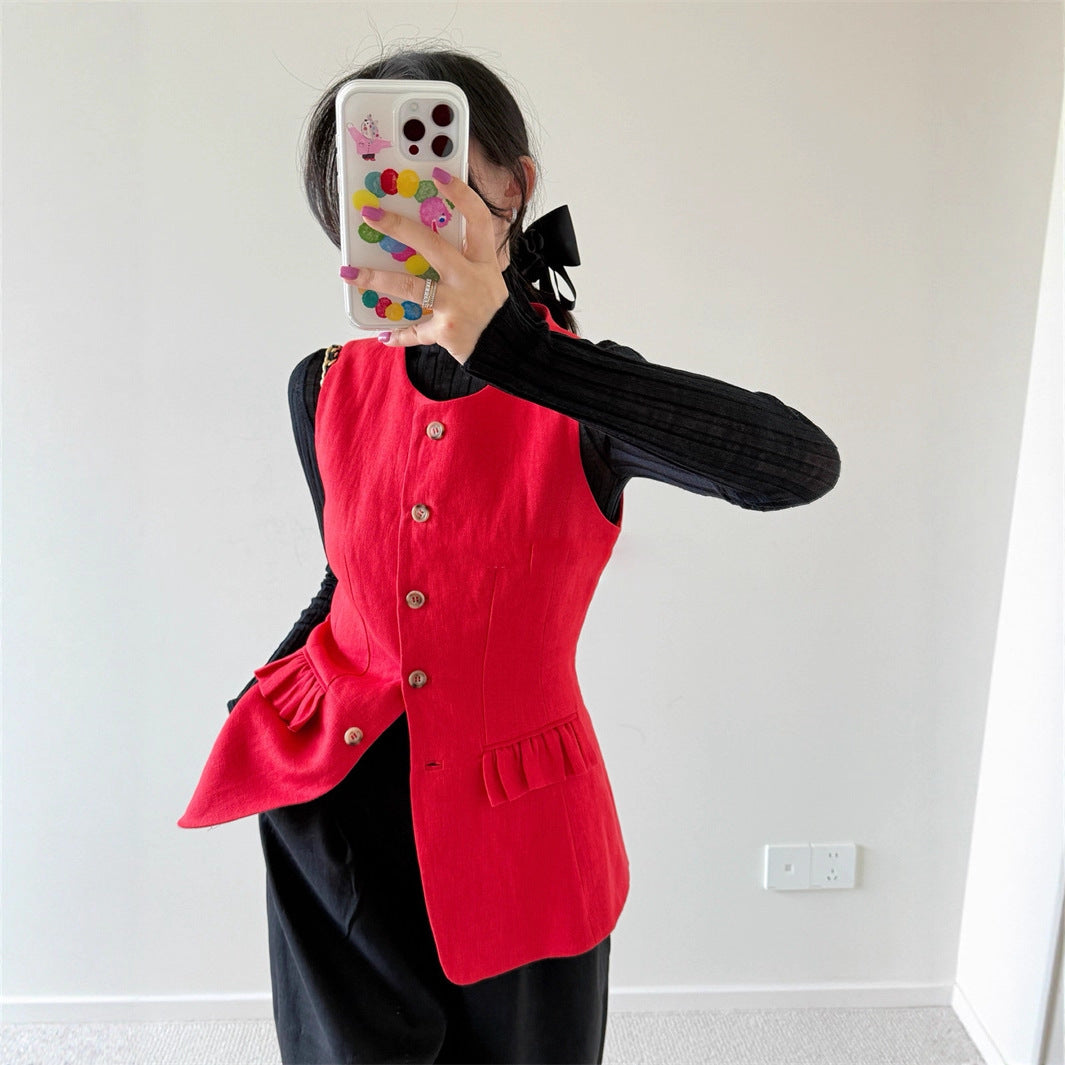 This sleeveless vest is the perfect addition to any collection, providing a sophisticated yet relaxed approach to everyday fashion.