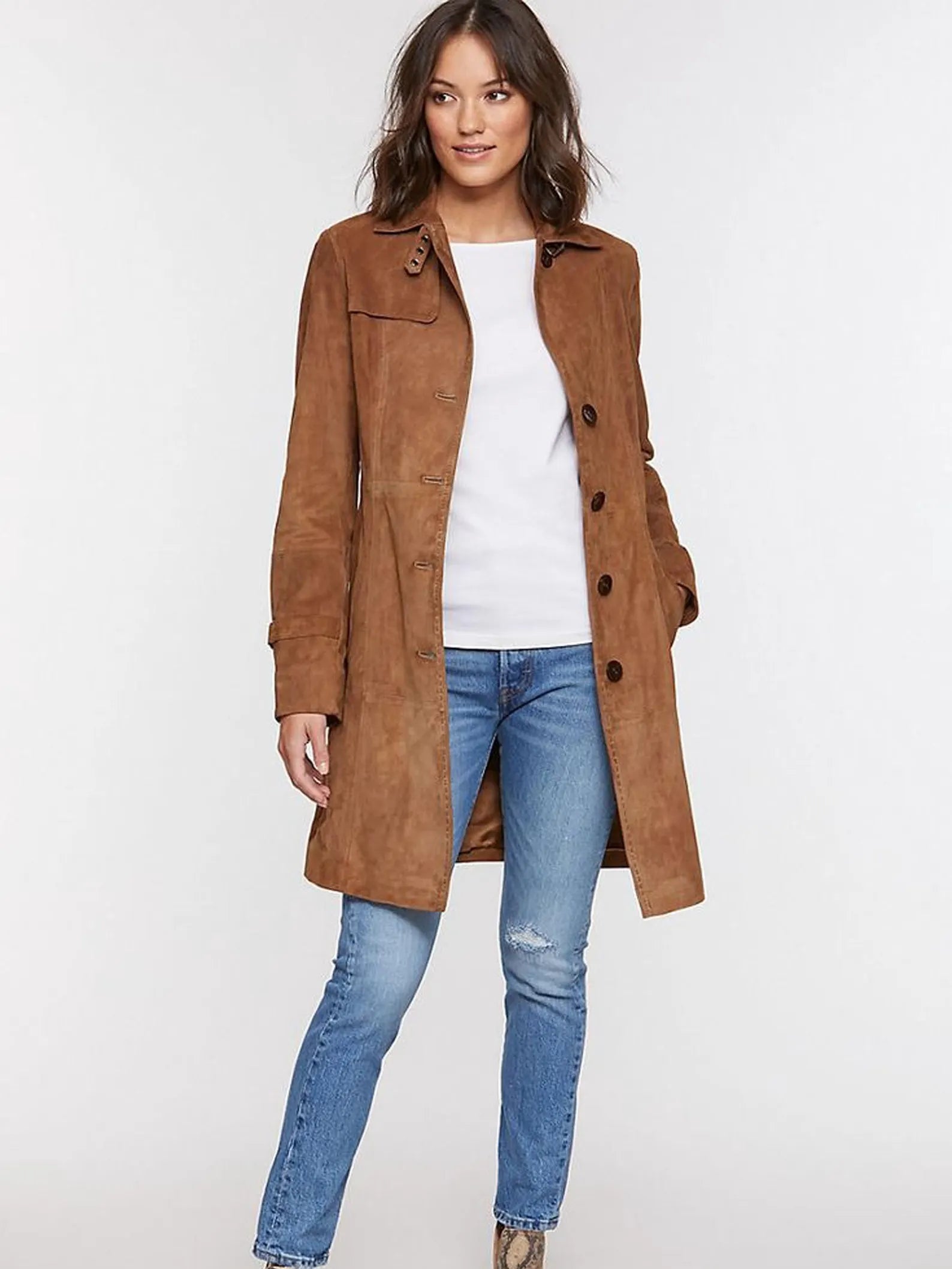 - genuine suede trench coat ladies fit – tailored, structured, and breathable