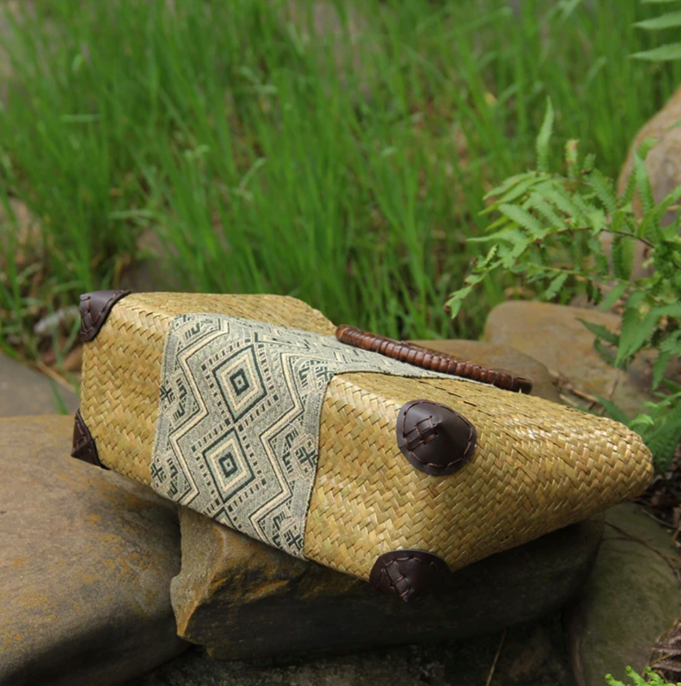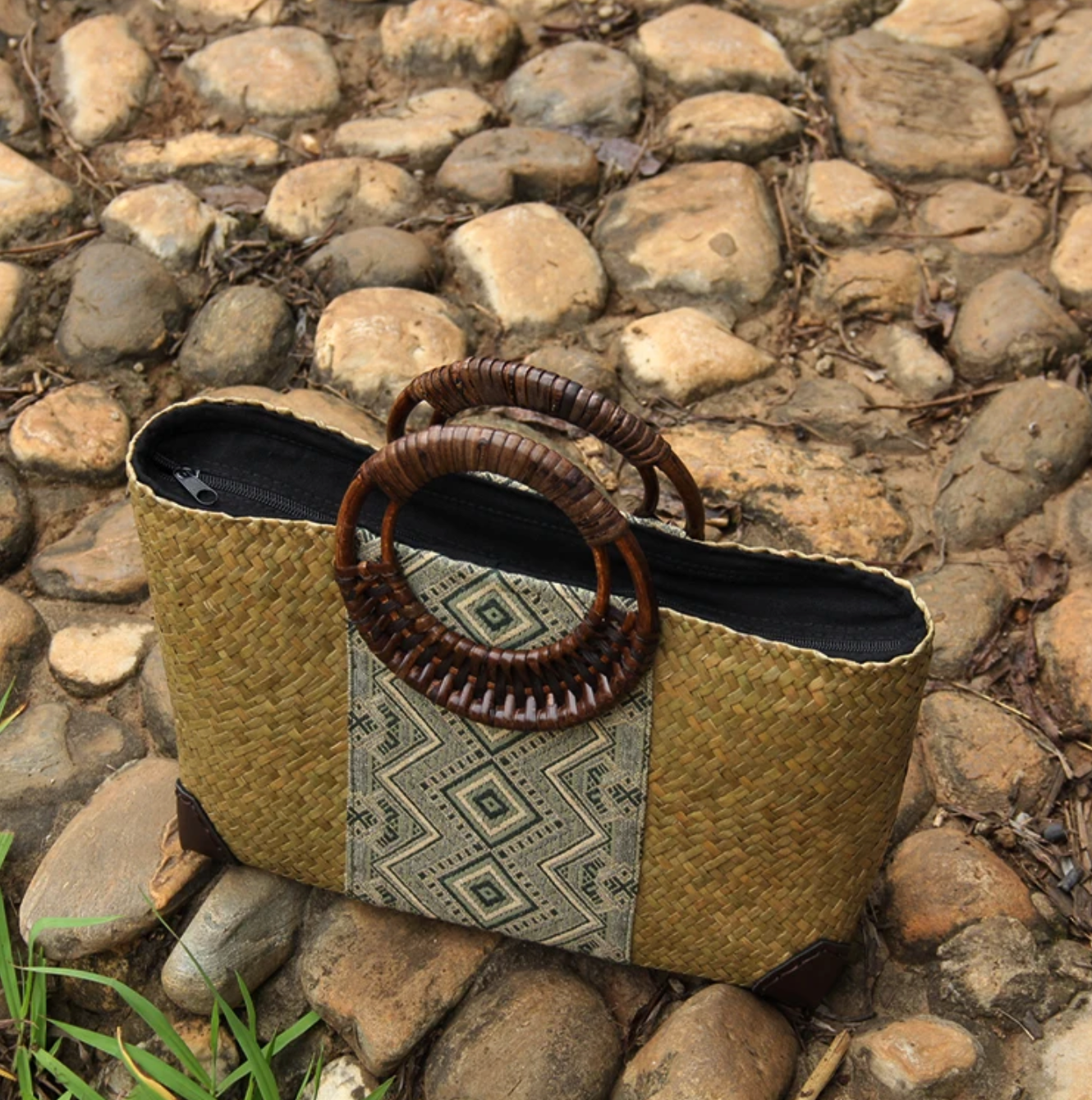 - Handmade seaweed weaving with a natural finish for a breathable summer woven bag