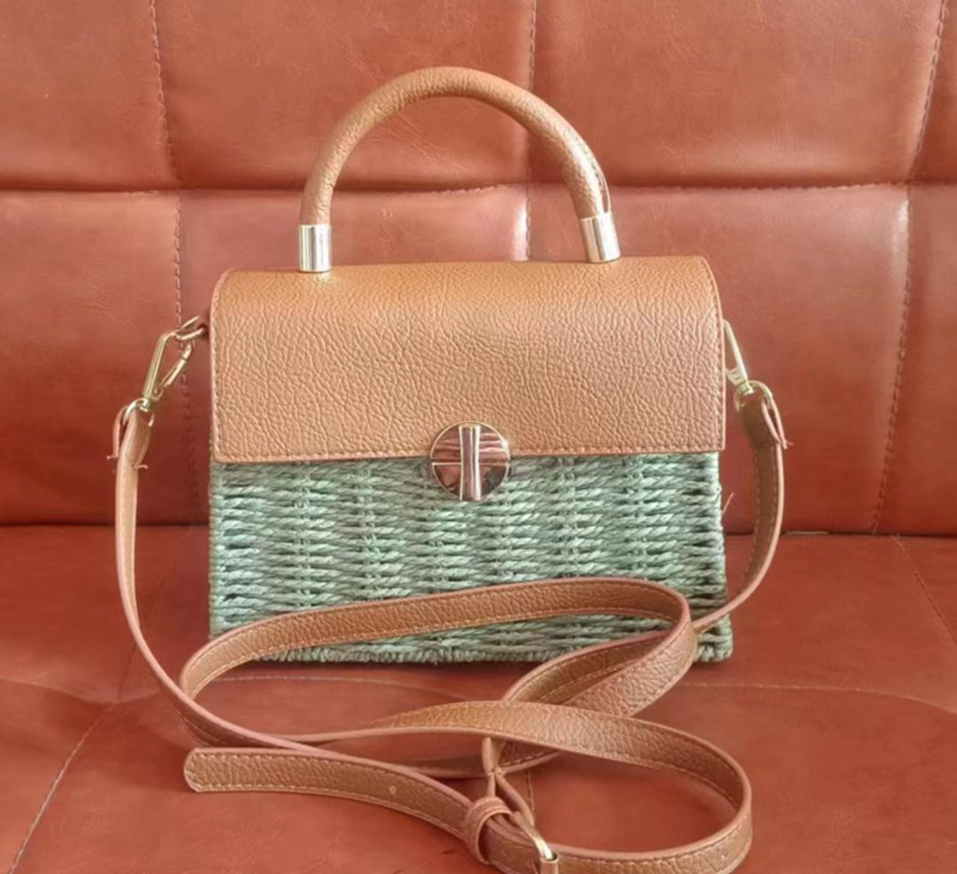 Woven Straw Summer Bag with Leather Handle for Beach & Vacation