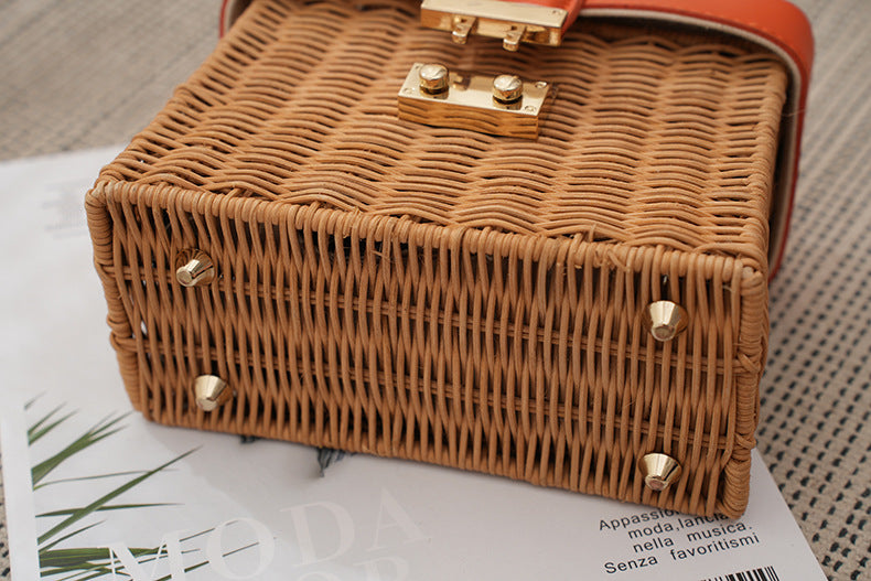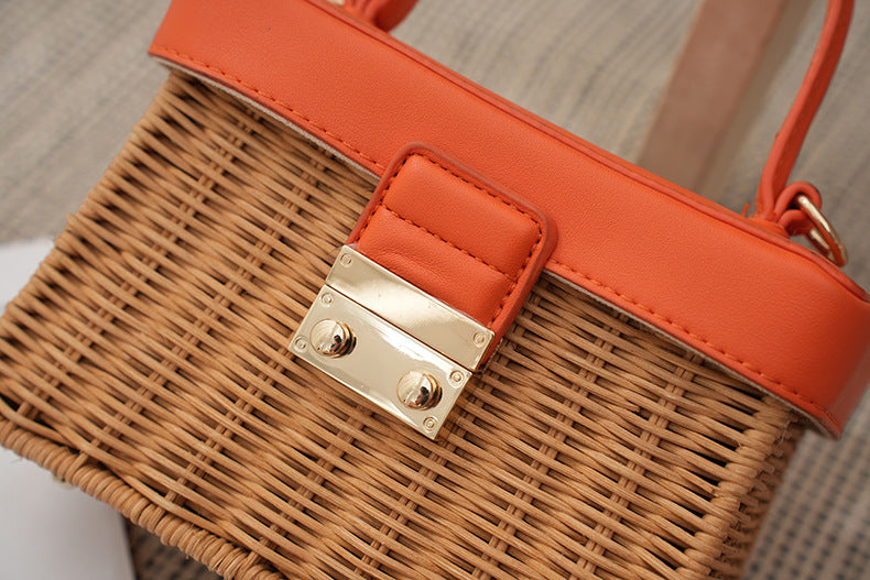Bring effortless summer style to your wardrobe with this woven straw crossbody bag designed for women who love compact yet functional handbags. Featuring a premium straw body with leather trim, this designer straw purse transitions from beach days to city strolls with ease. Great as straw bag shoulder bag, while the lock adds security and polish. Lightweight and structured, it’s the perfect straw purse for summer to carry your essentials while staying on-trend. A standout among beach straw bags, this woven handbag blends natural texture with modern design.
