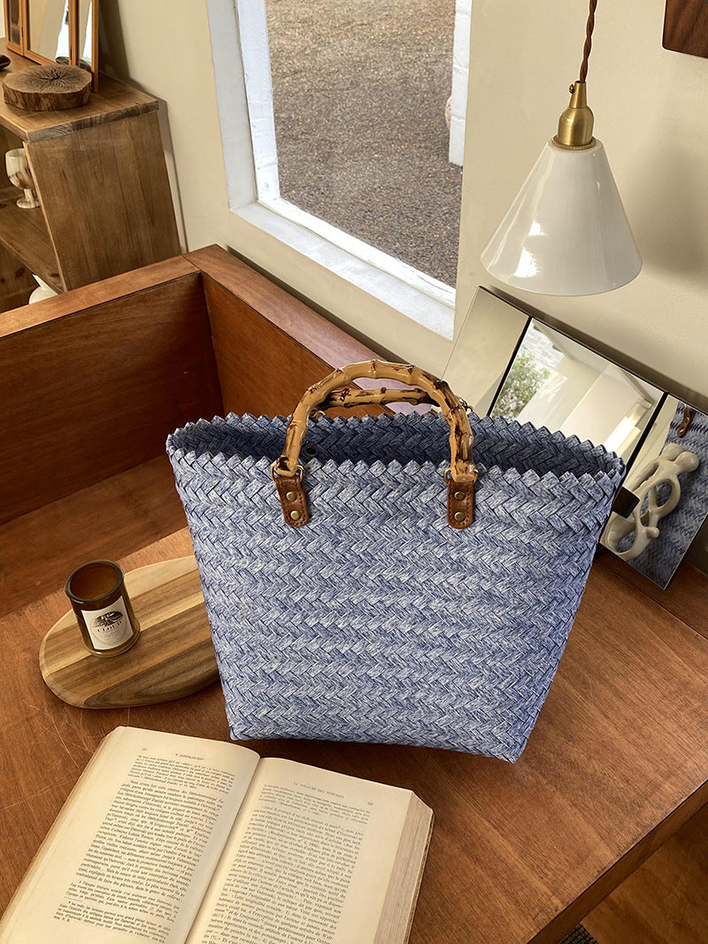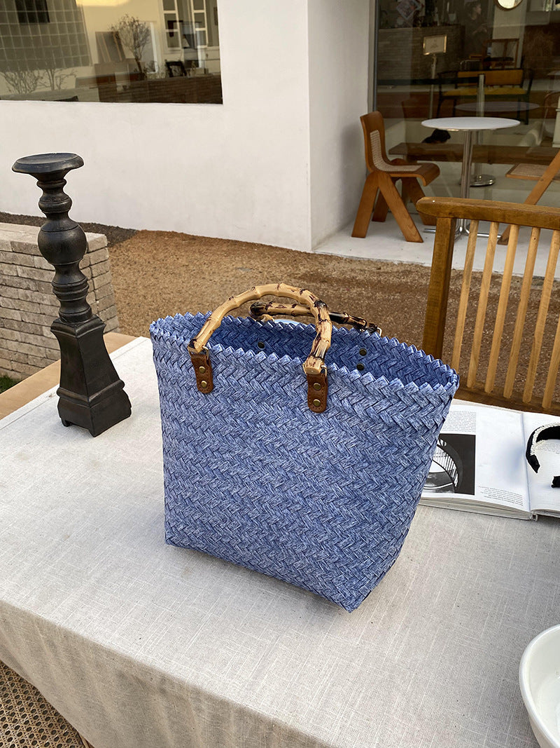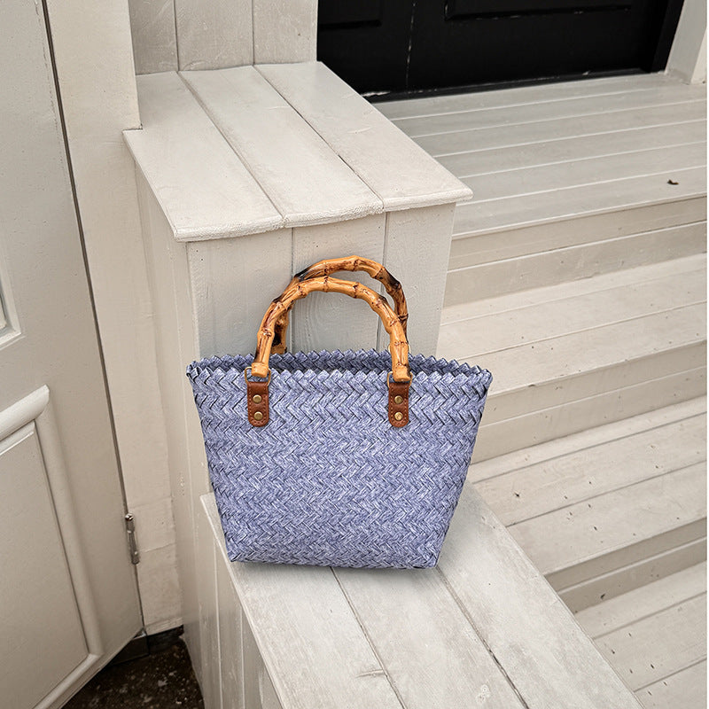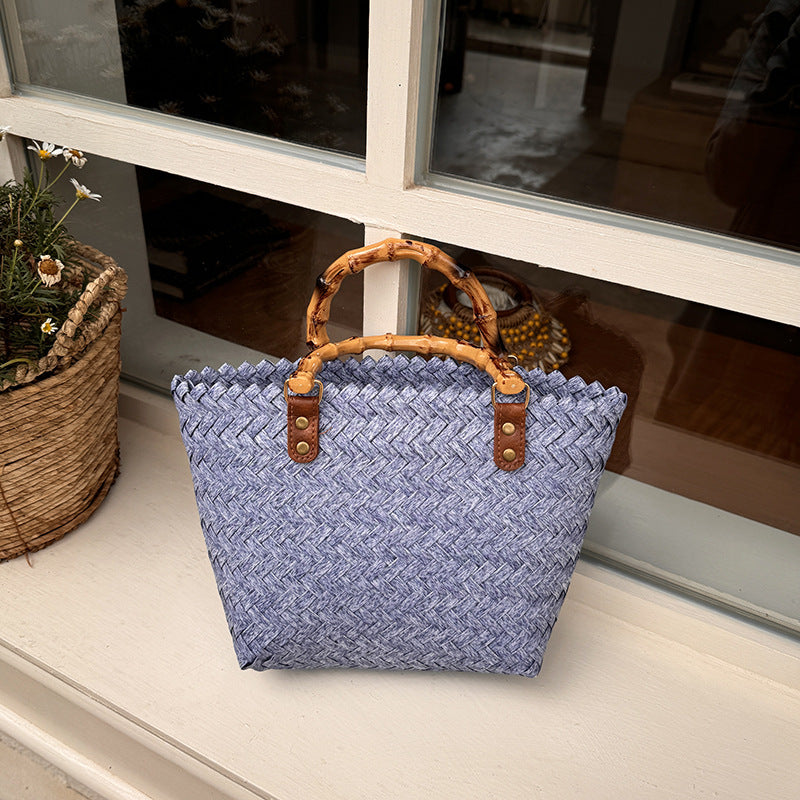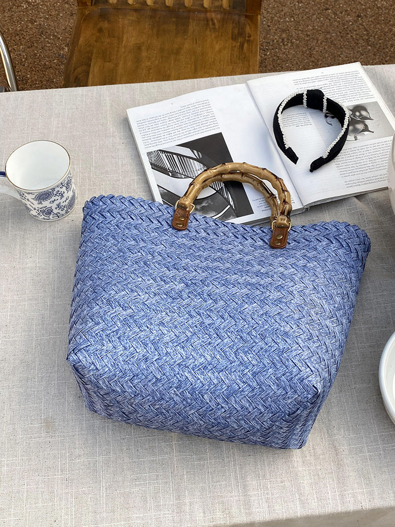 Woven Rattan Summer Tote Bag – Bamboo Handle Beach Bag for Women