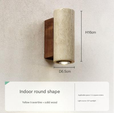 Yellow Travertine Wall Lamp Solid Wood Sconce